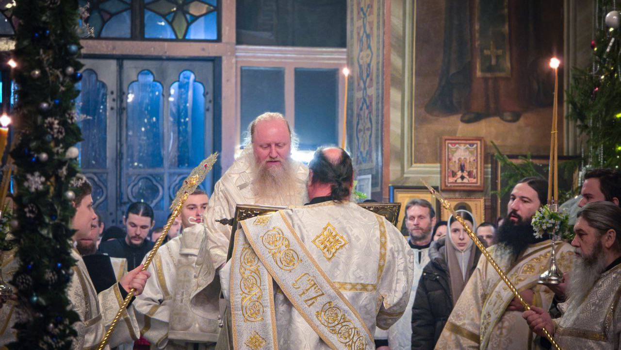 В полночь 7 января Божественную Литургию в соборе возглавил Высокопреосвященнейший схимитрополит Никон (Васин).
